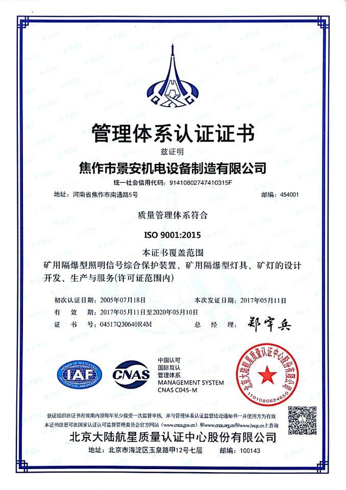 焦作景安公司始終堅持“以科技為先導,以市場為導向”的發(fā)展戰(zhàn)略,不斷進行新產(chǎn)品的研制和開發(fā),在國家“六五”到“九五”期間,承擔和參與了國家多項科技攻關項目。并被中國電器工業(yè)協(xié)會評定為“質量可信產(chǎn)品”。特別是在礦用防爆燈領域,礦用隔爆型半導體(LED)照明燈具,2008年列入國家火炬計劃,獲2009年河南省工業(yè)和信息化廳的科技成果二等獎,并擁有多項國家專利。